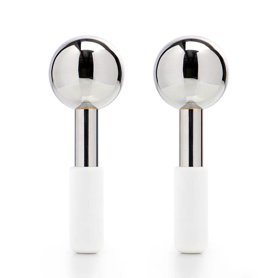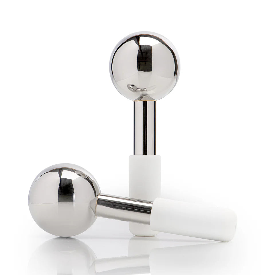 The durable stainless steel globes contour perfectly to the skin, especially around the sensitive eye area. The removable silicone handles ensure your fingers stay warm while the globes stay icy cold for an effective treatment.