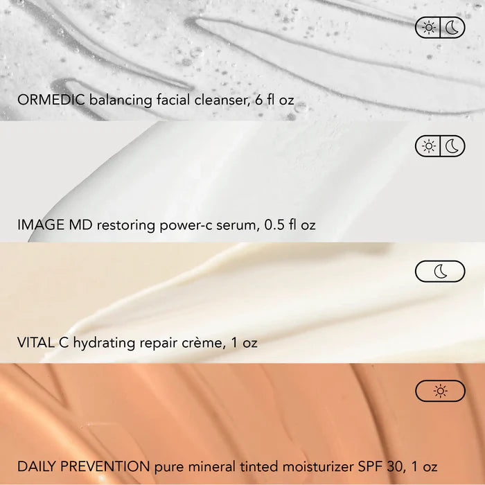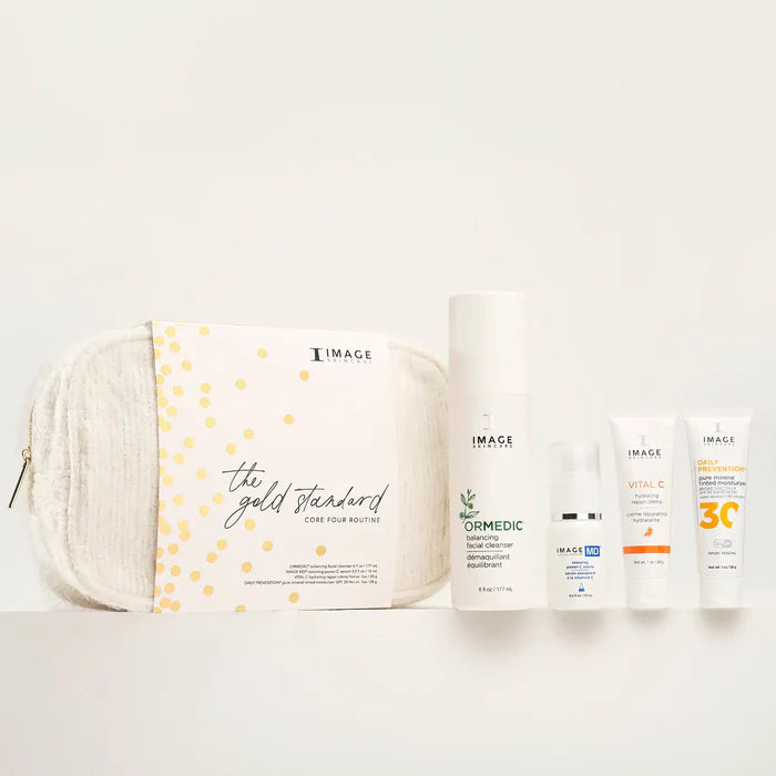 Experience the Gold Standard Core Four regimen of IMAGE clinically-proven formulations. Quench thirsty skin with this professionally curated set that includes a complete AM/PM regimen. Featuring thenew and improved IMAGE MD® restoring power-C serum. The ultimate grand gesture for skincare-obsessed.